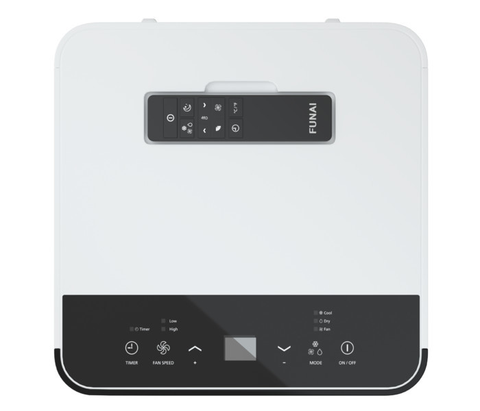 Мобильный кондиционер FUNAI (Фунай) MAC-OR25COF10 работает только в режиме охлаждения с отводом конденсата через дренажную трубку с помощью встроенного насоса. Модель оснащена сенсорной панелью управления с цифровым дисплеем, на которой можно выбрать режим работы, скорость вентилятора, установить таймер. Также в комплекте предусмотрен дистанционный пульт управления.